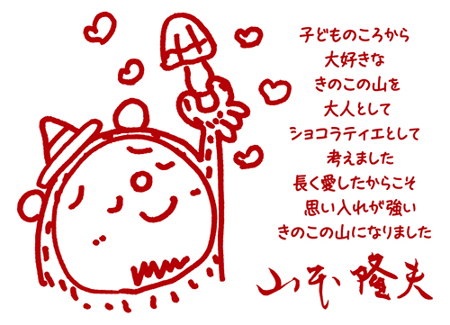 山本シェフが子どもの頃から大好きな「きのこの山」を、大人として、そしてショコラティエとしてのこだわりを込めて、ナッツの香ばしさと抹茶の風味を楽しめるフレーバーに仕立てていただきました。チョコレート部分は2層構造で、「きのこの山」ならではのカカオ香るチョコレートと、ヘーゼルプラリネに抹茶を合わせたチョコレートにキャラメルパウダーを加えてコクをプラスし、ココア風味のクラッカーと組み合わせました。チョコレート部分に配合したクラッシュキャンディの食感も楽しめます。※1