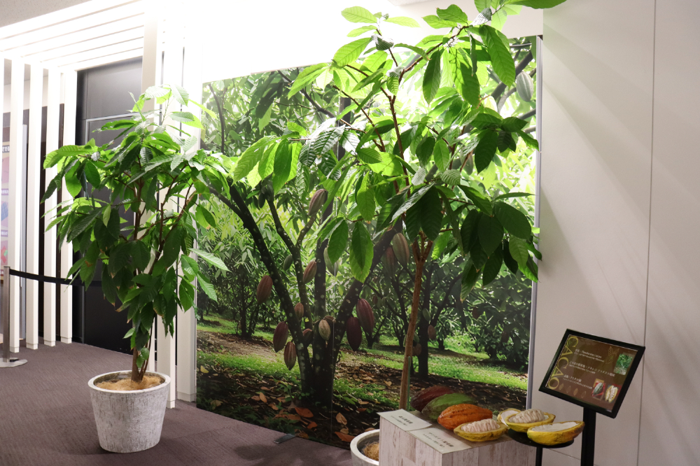会場を入ると、本物のカカオの樹や、カカオ⾖の発酵・乾燥などのプロセスがわかる模型などが並び、視覚的に楽しめる仕掛けがいろいろ。また、業界初と言える全国の Bean to Bar チョコレートブランドをまとめたマップも展⽰され、食べるだけではなくカカオ・チョコレートを学ぶ情報収集の場としての価値も感じられます。