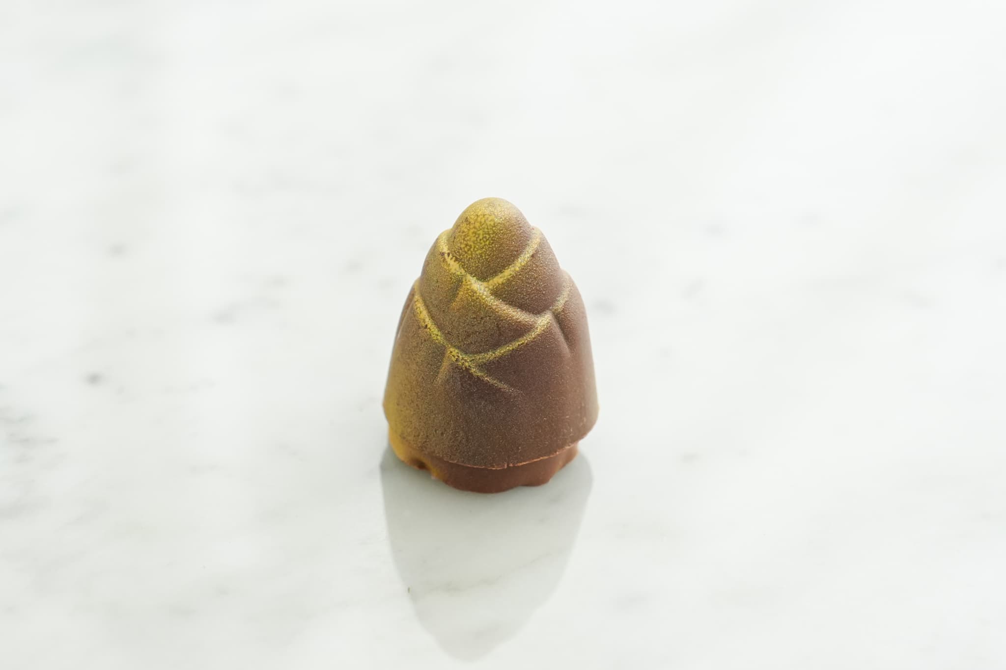 田中:このチョコレートを使用するのは今回で3回目となります。過去の経験から、副素材と複雑に混ぜ合わせると、どうしてもこのカカオ特有の個性が埋もれてしまいやすいと感じていました。そこで今回は、ホワイトカカオが持つ本来の魅力を最大限に引き立てるため、あえてシンプルな「生チョコ」に仕立てています。