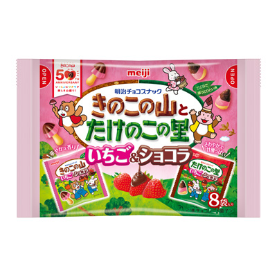 | 原材料名 | <きのこの山> 植物油脂(国内製造)、小麦粉、乳糖、砂糖、全粉乳、ココアバター、練乳パウダー、ショートニング、まっ茶、異性化液糖、麦芽エキス、食塩、イースト/乳化剤、膨脹剤、クチナシ色素、香料、酸化防止剤(ローズマリー抽出物)、(一部に小麦・乳成分・大豆を含む) <たけのこの里> 砂糖(国内製造)、小麦粉、植物油脂、乳糖、ショートニング、液卵、全粉乳、ココアバター、練乳パウダー、卵白、マーガリン、まっ茶、アーモンドペースト、食塩、麦芽エキス/乳化剤、膨脹剤、クチナシ色素、香料、酸化防止剤(ローズマリー抽出物)、(一部に小麦・卵・乳成分・アーモンド・大豆・マカダミアナッツを含む) |