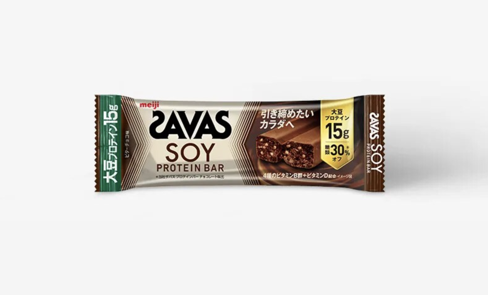 大豆プロテイン15g/本を配合。様々なシーンで小腹を満たしながら手軽に摂取でき、引き締めたいカラダづくりをサポートします。